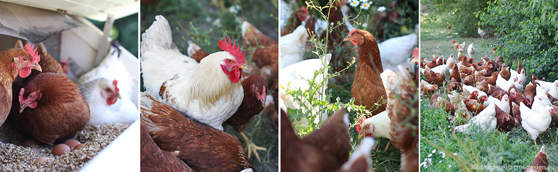 Zu den Hennen gesellen sich 3 Hähne, die auf die Hennenschar aufpassen und effektiv Warnrufe abgeben, wenn sich ein Greifvogel nähert. Die Hähne bringen außerdem Ruhe in die Gruppe und sorgen dafür, dass die Hennen harmonischer miteinander umgehen.